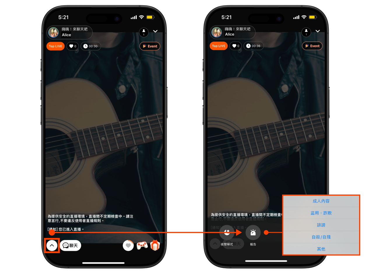 當你發現不當的直播內容、圖片或名稱時,可以隨時向我們回報!🚨
