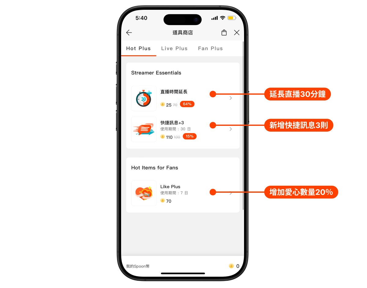想讓你的直播更具特色、更吸引人嗎?那來 Spoon 的道具商店逛逛吧!🛒
